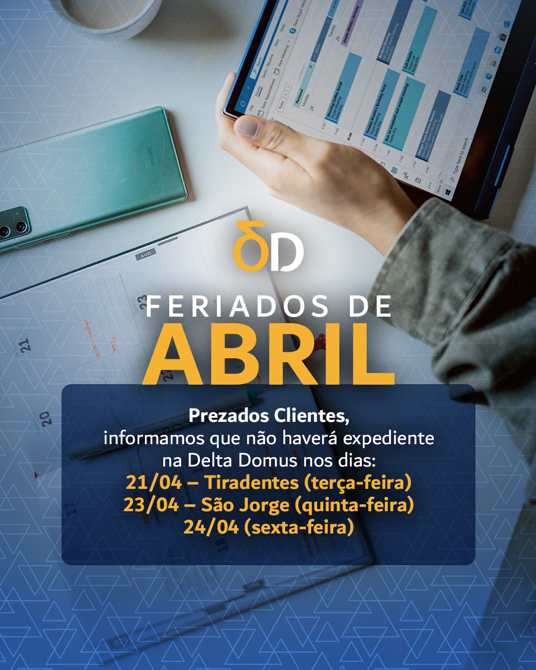 Prezados Clientes, informamos que não haverá expediente na Delta Domus nos dias: